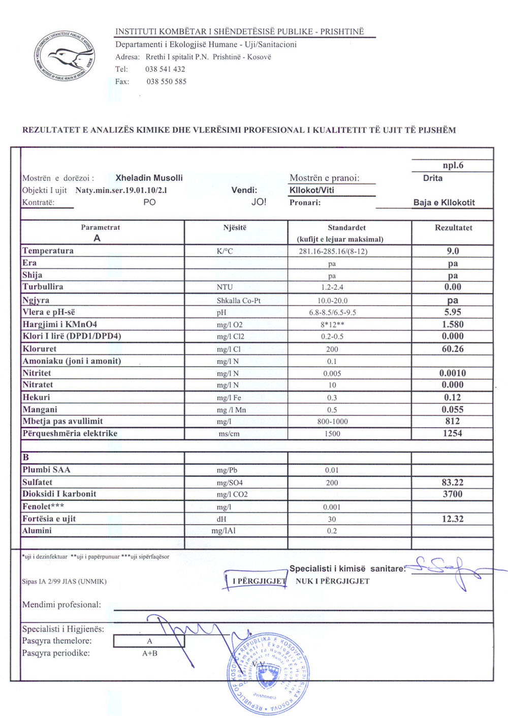 Analiza Bakteriologjike dhe Kimike
